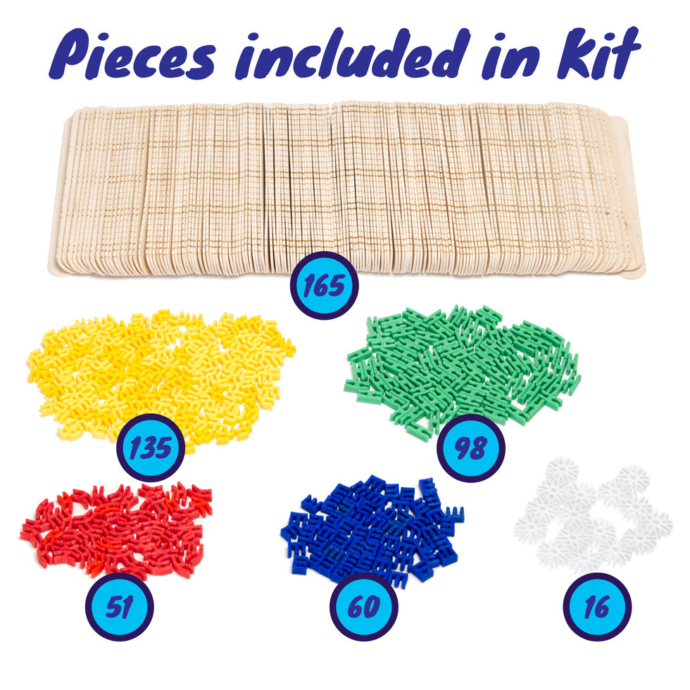 Introducing our Adventure Kit, perfect for builders looking to let their imagination run wild! This kit includes a whopping 525 pieces, including 360 Nurkl and 165 Custom Etched Craft sticks, all with our precision guide system to make building a breeze. Whether you're building a towering skyscraper or a sprawling fortress, this kit has everything you need to bring your creations to life. And when you're done, everything packs neatly into the resealable pouch for easy storage or transportation. Let the adventures begin with our Adventure Kit!